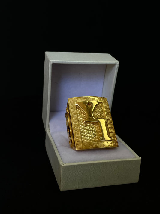 Anillo Macizo en Plata con Letras y Apliques en Oro