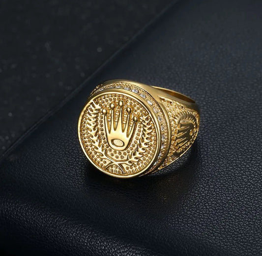 Anillo Sello Personalizado Guarda Griega y piedras Plata 925 enchapada en Oro 18K