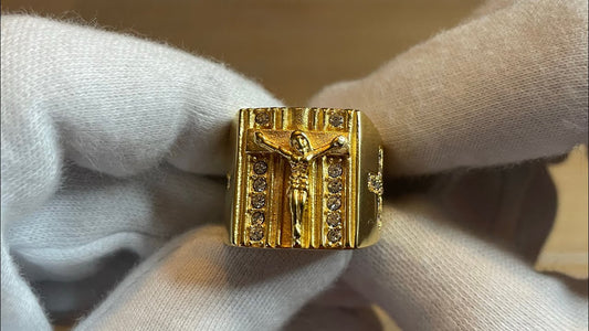 Anillo San Miguel en Plata maciza con Mesa Y Apliques en Oro macizo