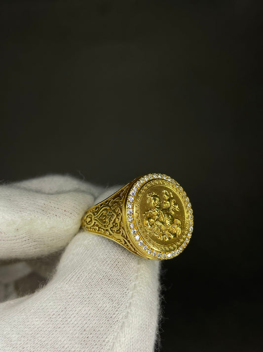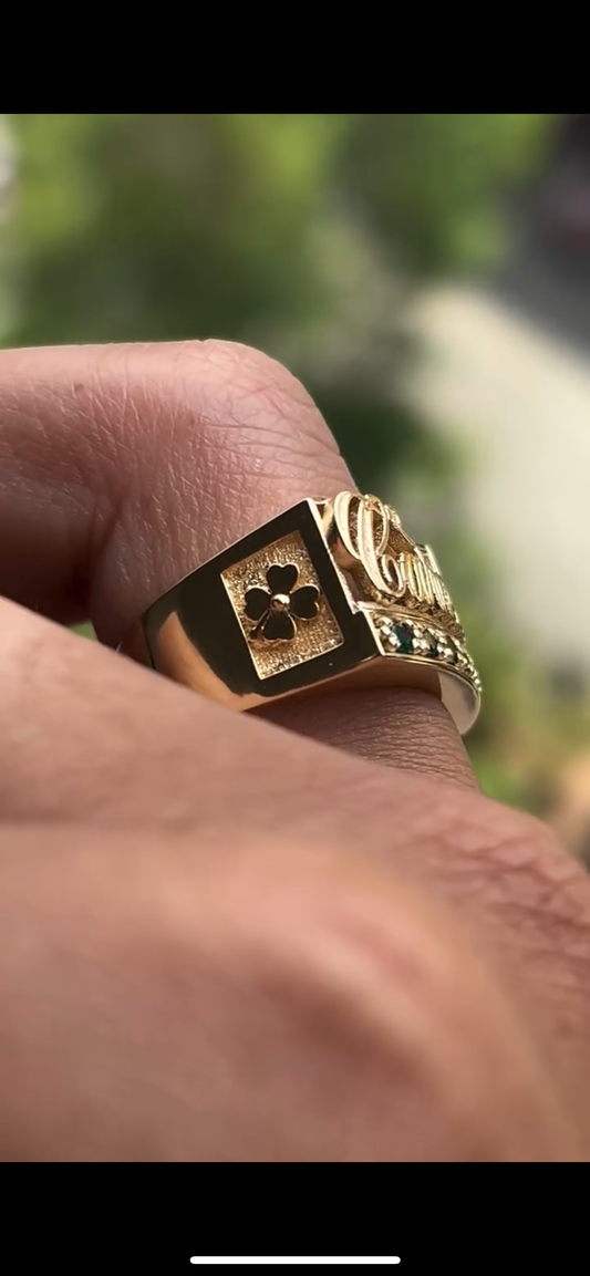 Anillo de Mesa Personalizado Sello Hombre completo Plata y Oro 10K