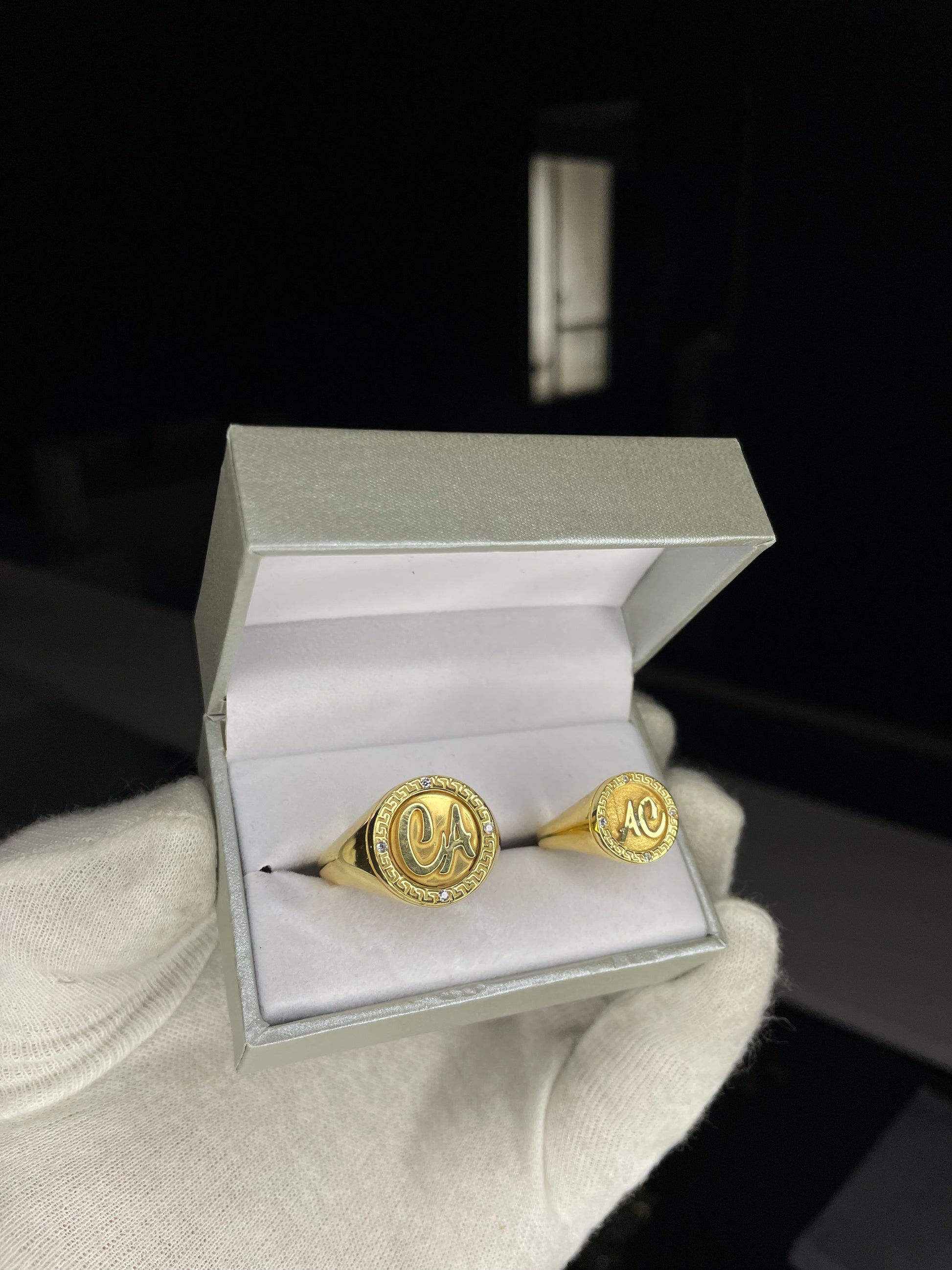 Alianzas Sello Guarda Griega Plata enchapada en Oro 18K