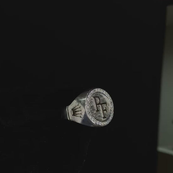 Anillo macizo en Plata con Letras y Apliques en Oro