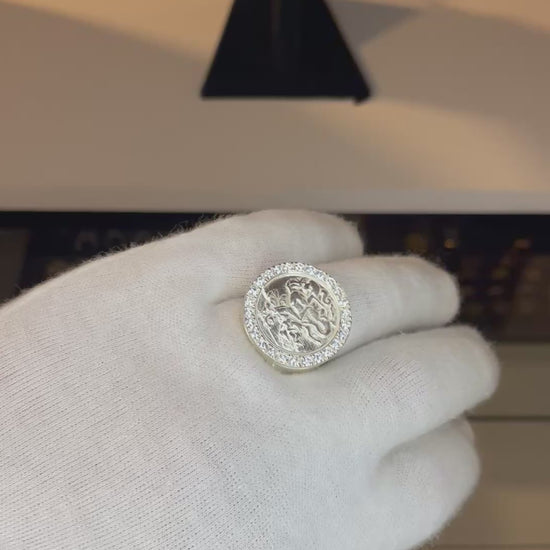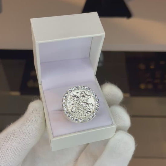 Anillo SAN JORGE en Plata 925 con incrustaciones en toda la mesa