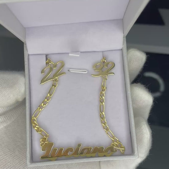 Cadena Nombre y Apliques en Plata Bañada en Oro 18K